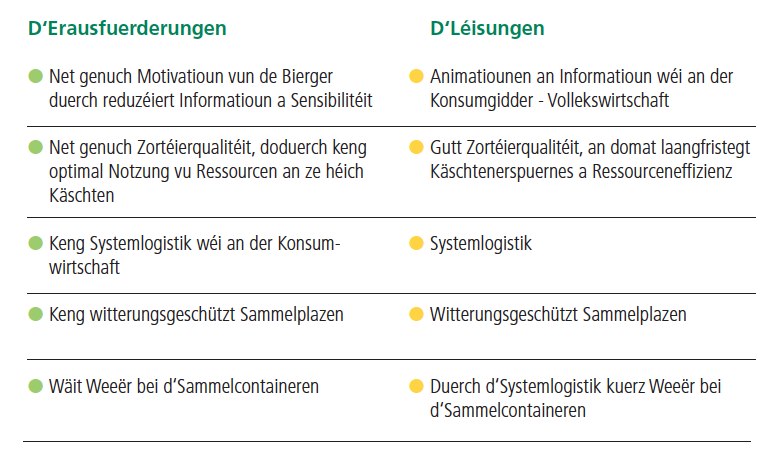 Konsum bedeit d‘Versuergung vun de Bierger/innen mat den deeglech noutwennege Gebrauchs- a Verbrauchsgidder. Réckkonsum ass déi spigelbildlech Organisatioun vum Zréckhuele vun dëse Ge- a Verbrauchsgidder no de Servicekriterie vum Konsum a stellt dermat eng noutwenneg Weiderentwécklung vun der klassescher Entsuergungswirtschaft duer. D‘SDK bitt eng ëmfaassend Service-Offer. Si hëlleft Problemer am Beräich vun den Offallprodukter an d‘Entsuergung mat intelligenten a käschtespuerende Konzepter ze léisen.